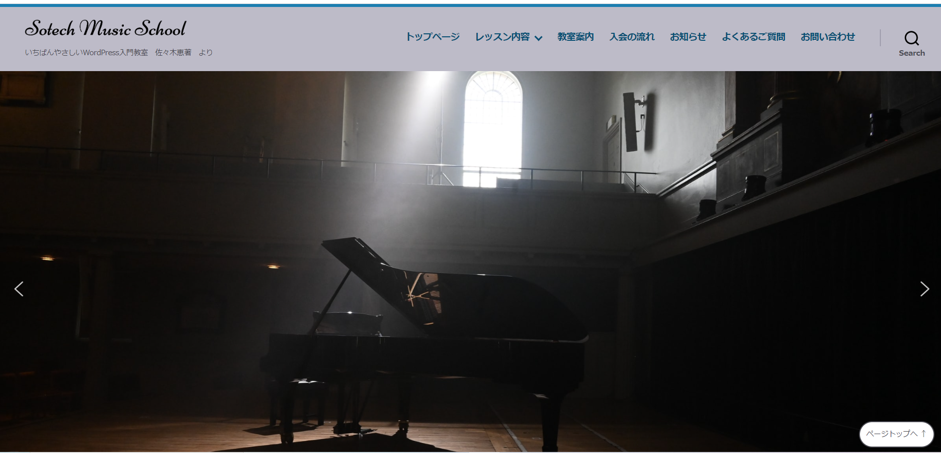 『いちばんやさしいWordPress入門教室』佐々木恵 著(ソーテック社)を参考にして作りました。架空の音楽教室のサイトです。 参考書 タイトル いちばんやさしいWordPress入門教室 著者 佐々木恵 出版社 ソーテ […]